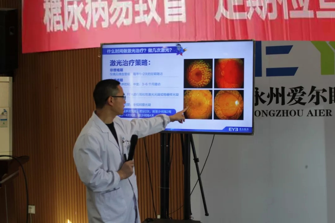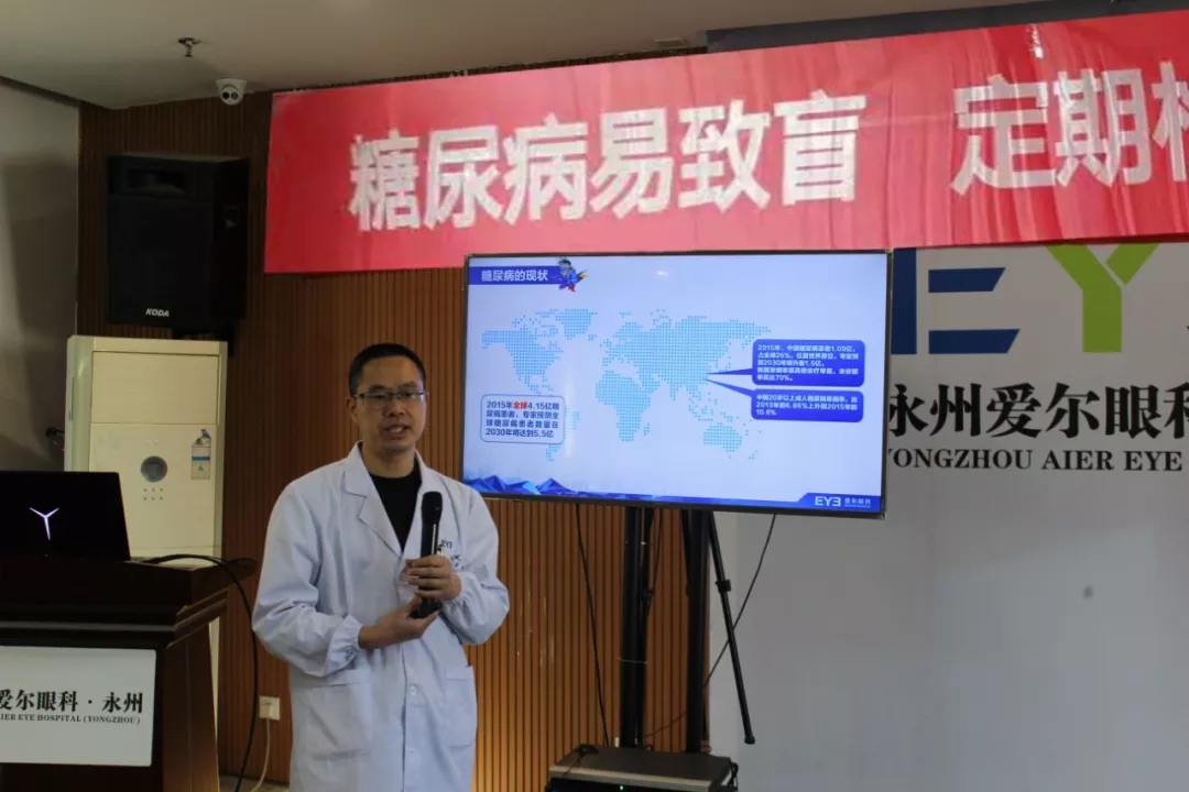 今年联合国糖尿病日期间,永州爱尔眼科医院开展“糖尿病易致盲,定期检查早控防”——眼底专家科普大讲堂”活动,旨在让更多“糖友”警惕糖尿病眼病所带来的致盲危害。永州爱尔眼科医院眼底科王会红主任呼吁:糖尿病患者一定要定期进行眼健康检查,早发现,早治疗,及时摆脱失明威胁!