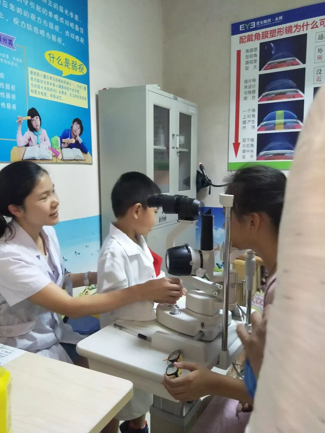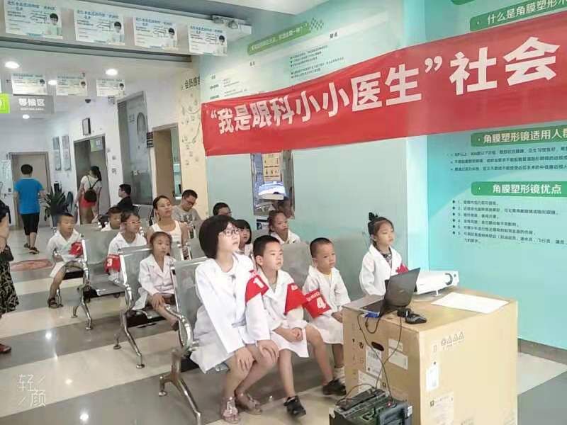 活动开始了,永州爱尔眼科的专家从眼睛的构造、近视的预防、如何健康用眼等方面做了详细、生动的讲解,为大家带来了一堂生动的爱眼护眼讲座。为了让小医生对眼科检查的设备有一定的了解和认识,孩子们兴致勃勃地玩起了角色扮演的游戏,有“医生”有“患者”。在医生指导下,“小医生”们有模有样地学习使用眼科设备来观察眼睛、检查视力,“患者”们也积极配合检查,大家相互鼓励,整个过程十分融洽。