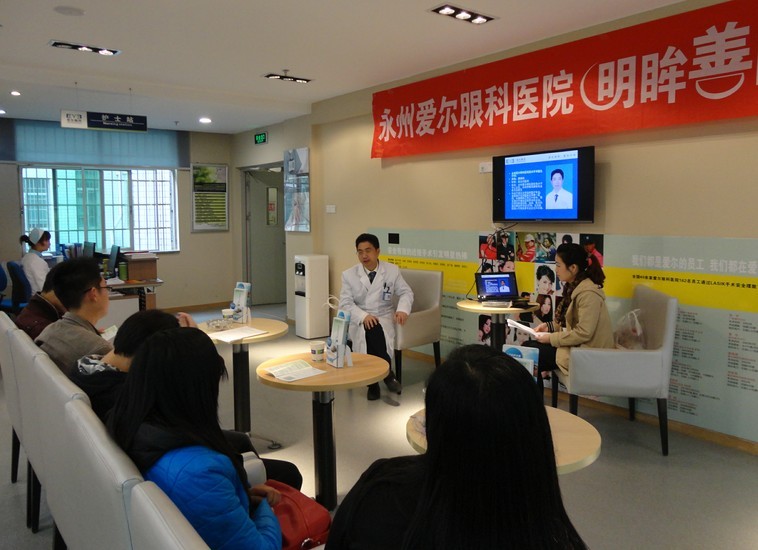 永州爱尔眼科医院屈光手术中心,自2012年7月28日医院开业后即开展准分子激光近视手术以来,已成功为近300多名近视患者成功开展激光近视摘镜手术。其中有近80人是做了近视手术应征入伍的军人。本次活动为永州爱尔眼科明眸善睐俱乐部的#次活动,因为下雨的原因来现场参加活动的人数不多,但是看到信赖爱尔眼科的新老朋友,在百忙之中的抽出宝贵的休息时间,风尘仆仆的从零陵、岚角山等地赶来参与活动,会员俱乐部的各位工作人员,向每位在场的会员朋友致词欢迎,虽然只有短短的几句,也没有华丽的辞藻,但是爱尔眼科工作人员对会员的感激之情是溢于言表的。