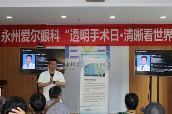 8月10日上午九点,永州爱尔眼科医院在本院六楼会议室,举办了以《透明手术日·清晰看世界》为主题的中老年性眼病公益讲座。期间,永州爱尔眼科医院黄海涛院长和青白科主任胡艳玲主任,对多种眼病防治问题进行了详细讲解,并与现场观众 进行了现场互动问答。此次活动,近百余名老年患者得到了免费的眼部基础检查。