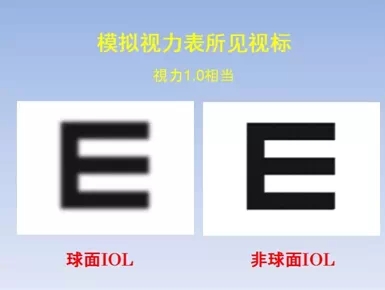 (球面晶体看视力表会有稍微的周边模糊,虽然不影响整个视力,但效果不尽人意。而非球面看东西则非常清晰。)