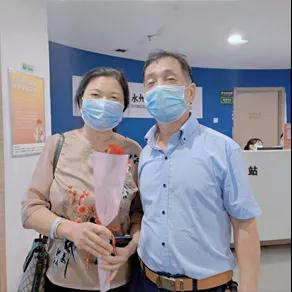 出院检查王阿姨视力良好,胡叔叔送上代表“一心一意一辈子”的玫瑰,祝贺王阿姨重见光明……