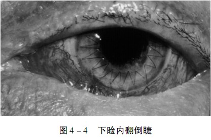 睑缘朝内转向眼球的眼睑位置异常称睑内翻。睑内翻后睫毛后倾,触及眼球表面,是谓倒睫。睑内翻和倒睫常同时存在。